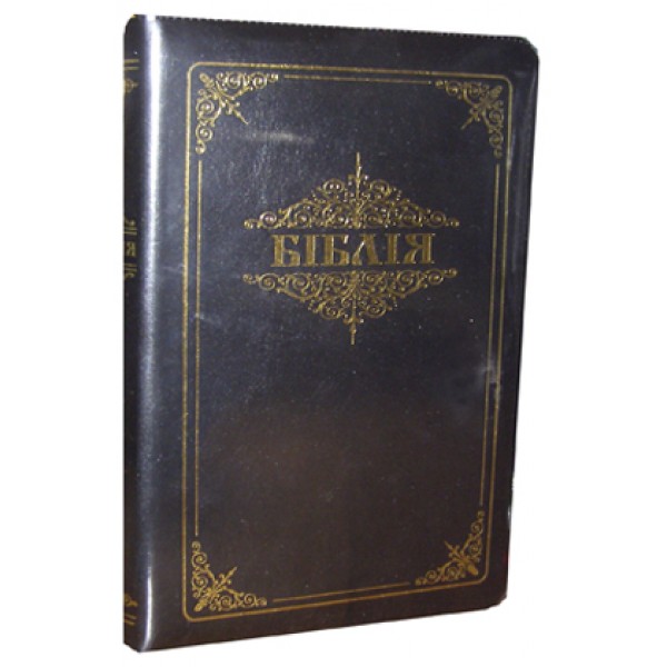 Каноническая Библия на украинском языке. Перевод профессора Ивана Огиенко, дословно переведенный с древнееврейского и греческого языков на украинский. Текст расположен в две колонки. Параллельные места по середине страницы. Мягкий переплет из натуральной кожи. Цвет обложки: черный. Золотой обрез страниц. Индексы для поиска библейских книг, на молнии. Размер 170х240 мм.