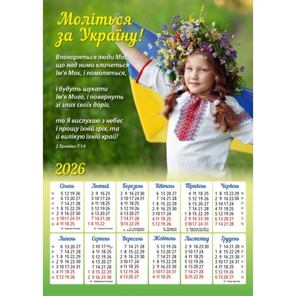 Християнський календар 2026 "Моліться за Україну"