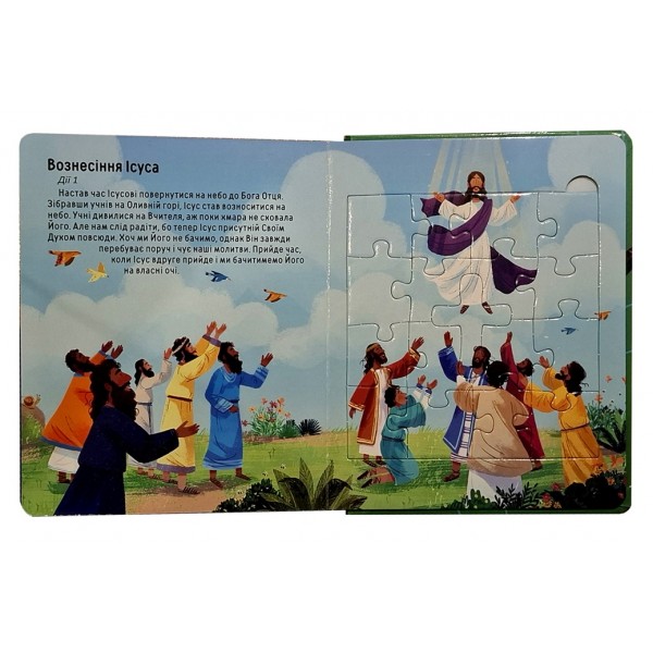 Дуже яскрава дитяча біблійна книжка з двома пазлами.